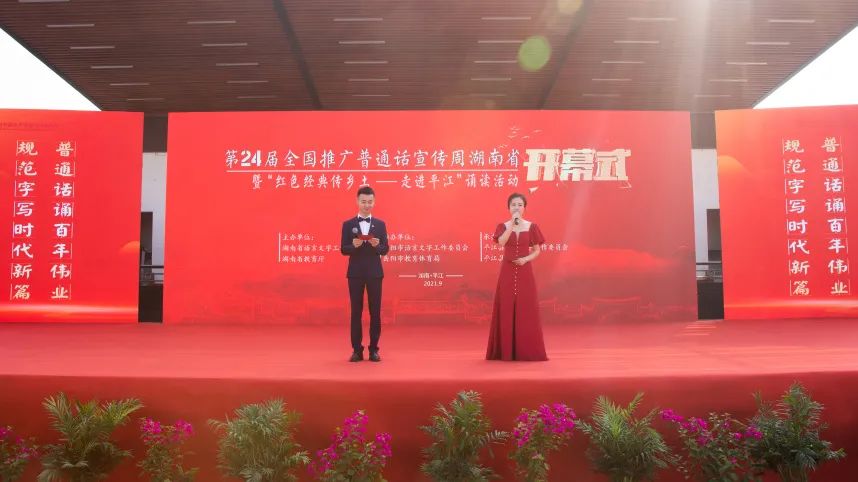 9月14日,第24届全国推广普通话宣传周湖南省开幕式暨“红色经典传乡土—走进平江”诵读活动在平江县简青芙蓉学校举行。省语委副主任、省教育厅党组成员王玉清宣布开幕,省语言文字培训测试中心主任冯传书,县委副书记、政法委书记胡伟出席活动。
