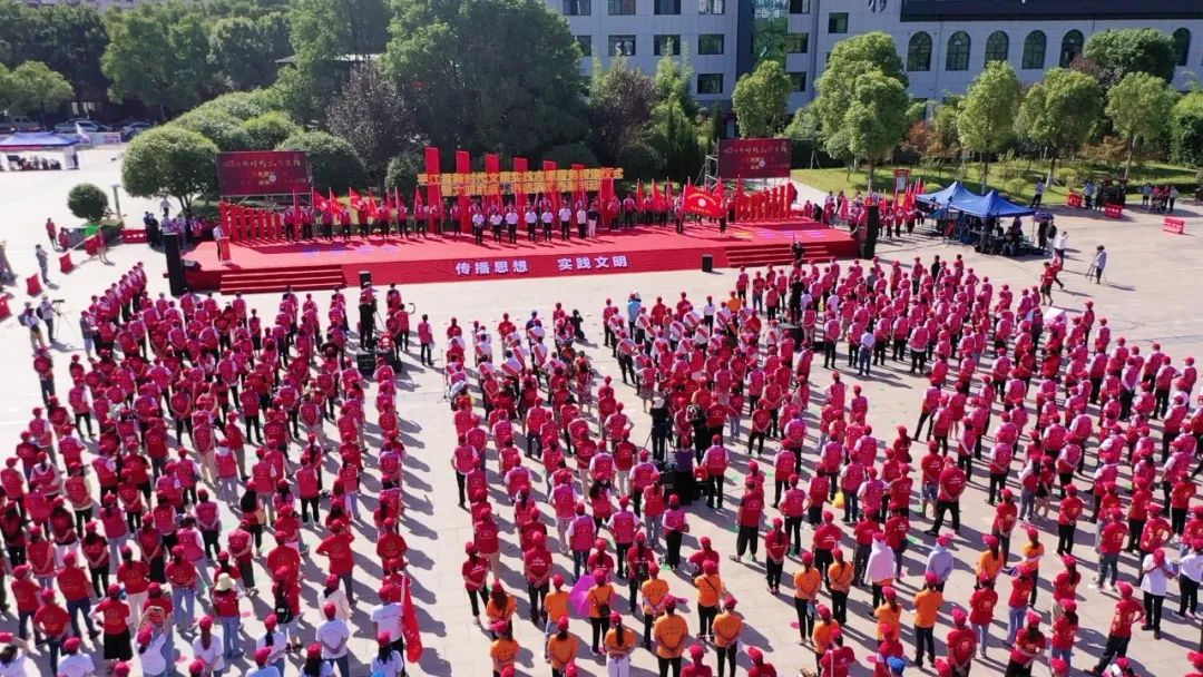仪式上,县委书记、县新时代文明实践中心主任李勇为县新时代文明实践志愿服务总队授旗,县委副书记、代县长、县新时代文明实践志愿服务总队总队长彭方建为26支志愿服务大队授旗,县委副书记、政法委书记胡伟为11支志愿服务分队授旗,县委常委、组织部长潘岳清为2支街道新时代文明实践党员志愿服务队授旗,县委常委、宣传部长田浩为9支社会志愿团体授旗。