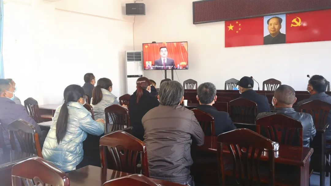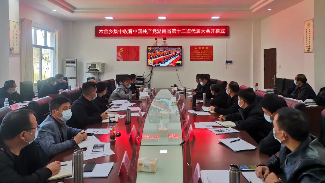 ▲木金乡集中收听收看湖南省第十二次党代会开幕式