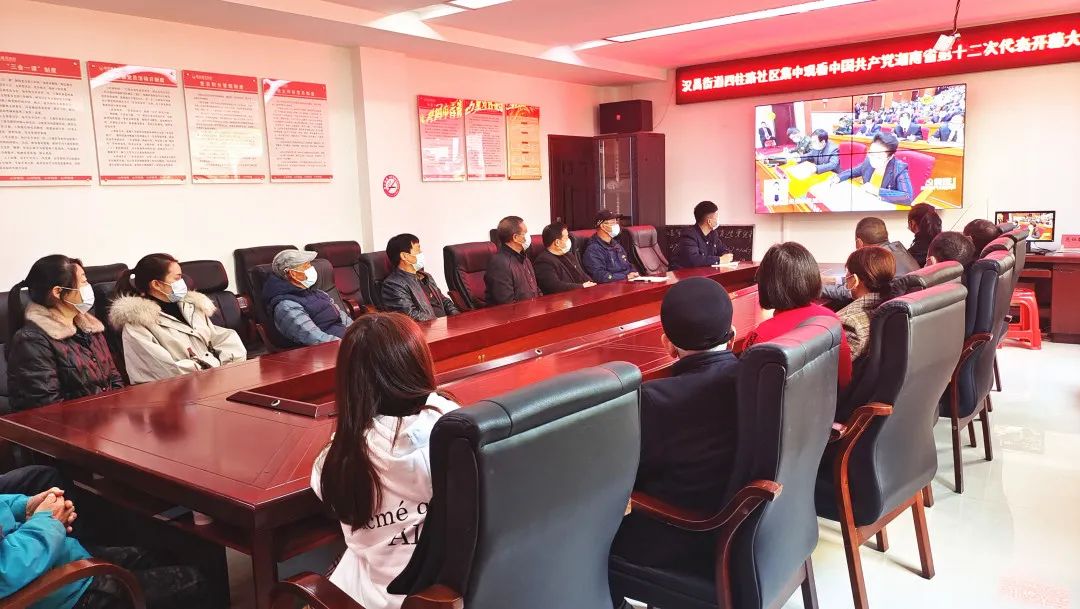 ▲汉昌街道四柱路社区集中收听收看湖南省第十二次党代会开幕式
