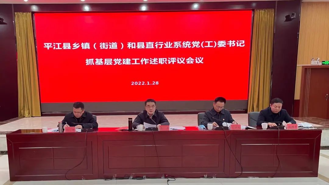 1月28日下午,县委召开2021年度乡镇(街道)和县直行业系统党(工)委书记抓基层党建工作述职评议会议。县委书记李勇现场点评并讲话,县委副书记、县长彭方建主持会议。全体在家县委常委会议组成人员出席,市委组织部相关部门负责人出席会议并作讲评。