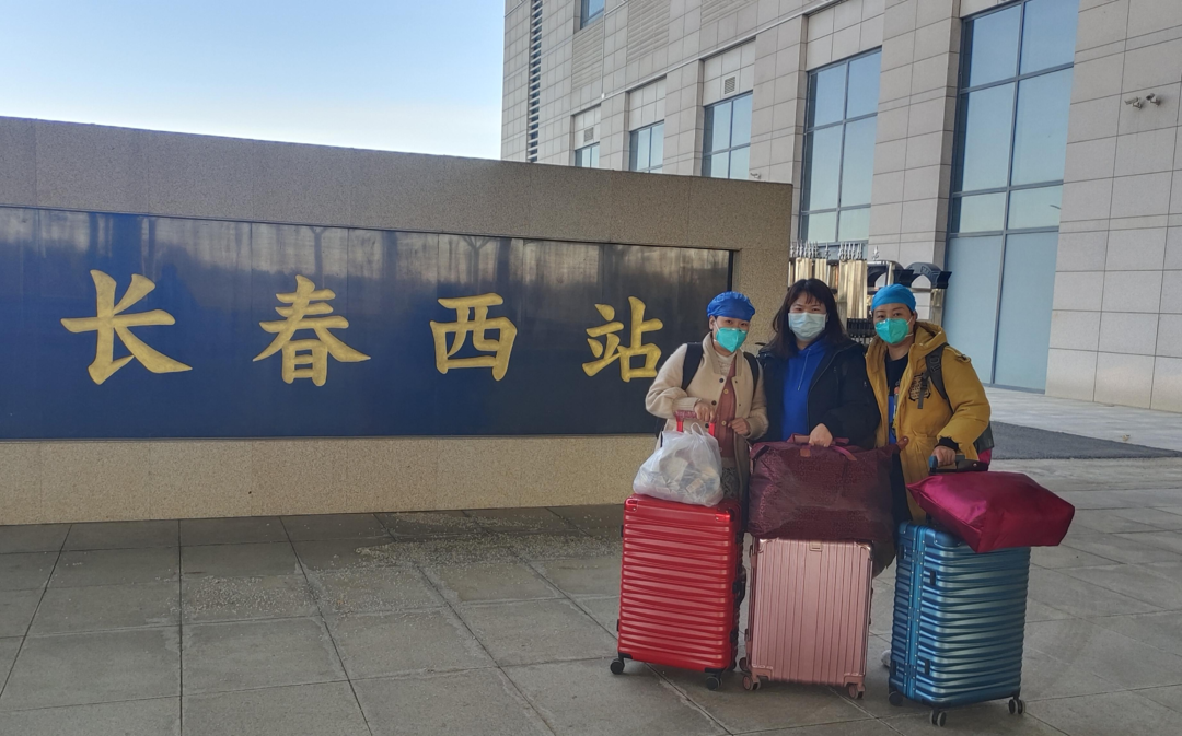 图为3月30日平江县第四人民医院的张尾芝和县中医医院的彭雅一行抵达吉林长春