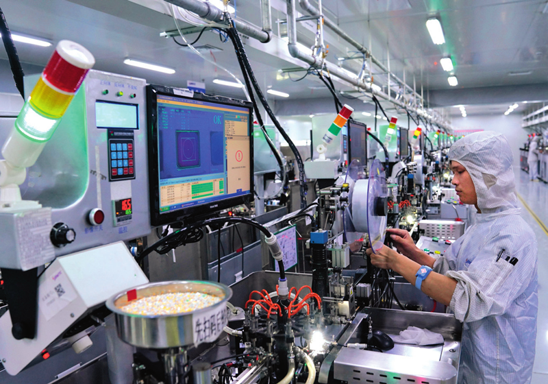 ▲2021 年 6 月 25 日,江西兆驰光元科技股份有限公司的工作人员在车间进行 LED 封装编带工序