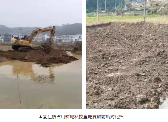 “想养鱼可以,但不能占用永久基本农田挖塘养鱼。” 2021年10月,县自然资源局执法人员在瓮江镇巡查时发现,村民贺某在自家的责任田上开挖池塘准备养鱼,执法人员连忙上前制止,并多次上门讲解法律政策。贺某在知晓政策后,承诺在规定时间内将土地复耕。