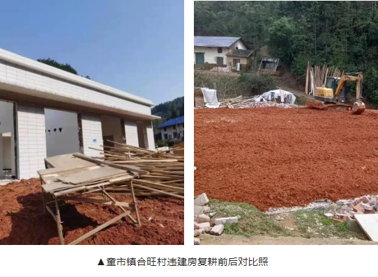 2021年1月,童市镇自然资源所巡查发现村民林某在未取得合法用地审批手续的情况下,擅自在童市镇合旺村光明组范围内建设住宅及附屋地坪。经调查认定,该违法建筑及地坪占用耕地面积0.81亩。2021年12月,平江县自然资源局向当事人林某下达责令改正违法行为通知书,责令当事人限期自行拆除违法建筑,恢复土地原状。2022年2月25日,在当事人林某未自行履行拆除的情况下,由童市镇人民政府联合相关职能部门人员强制拆除上述建筑物及附属设施并进行复耕,现已通过农业农村部门验收。