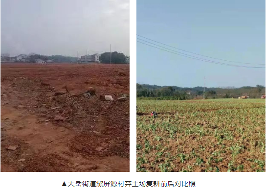 这里原是一大堆弃土场,如今全部填上沃土并种上油菜苗,遍地是生机。2021年12月,经县自然资源局卫片图斑监测发现,某公司在天岳街道黛屏源村非法占用土地建弃土场,县自然资源局执法人员当即前往现场制止,并对违法行为依法依规查处。目前,该公司已对该地块全部复耕,并通过农业农村部门的验收。经治理后,弃土场恢复成了农田,种起了庄稼。
