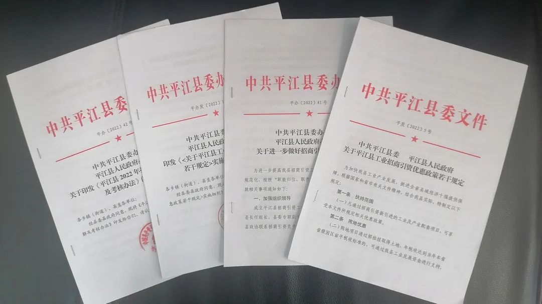 在招商引资的政策和制度方面,我县制定出台了《平江县工业招商引资优惠政策若干规定》等文件,从用地优惠、厂房优惠、收费优惠、奖补支持、金融扶持、人才扶持、物流扶持、固投奖励、创新奖励、外贸扶持、创业就业扶持、做大做强扶持等方面给予企业全方位保障,助力企业发展;下发《关于进一步做好招商引资工作的通知》,从加强组织领导、明确单位职责、规范工作流程、强化推进措施等方面提出明确要求,进一步提高我县招商引资工作的质效和水平,推动工作规范化。目前,我县一、三产业的相关扶持政策也正在加紧研究制定,不久将陆续出台。