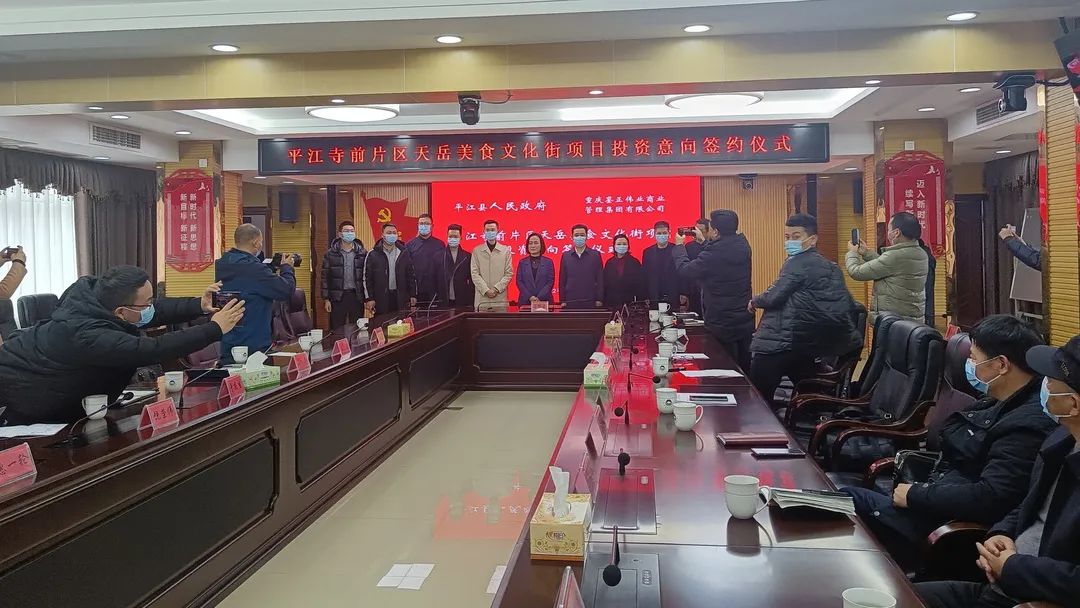 ▲平江寺前片区天岳美食文化街项目投资意向签约仪式。