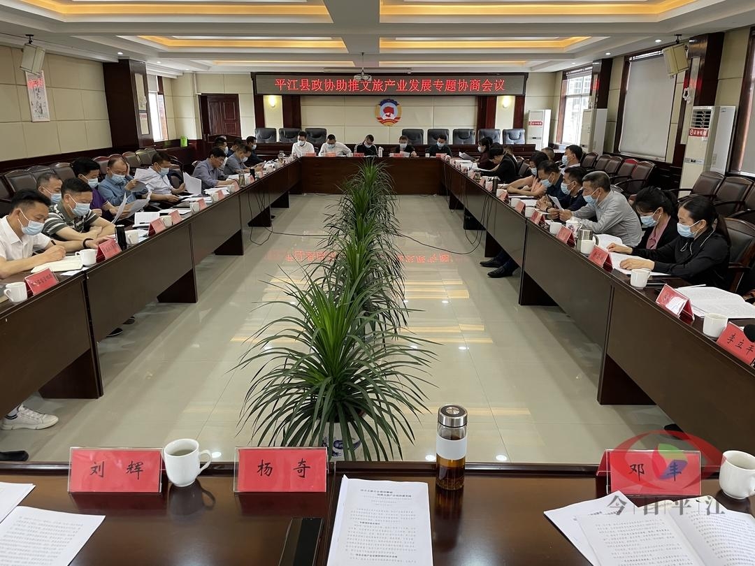 5月24日, 平江县政协助推文旅产业发展专题协商会议召开,县领导熊江新、田浩、李三军、吴向前、潘如意、向晓燕、周晓辉、郑湘平等出席。
