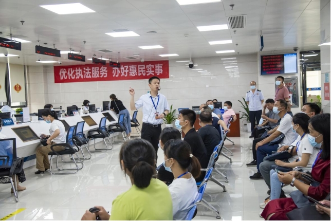 随后,市民代表参观政务服务大厅,并在进厅单位负责人的引导下,纷纷来到公安、市监、人社、医保、不动产、税务等窗口,详细了解身份证办理、姓名变更、企业设立登记、县外住院报销受理、不动产转移登记、代开发票及基层无证明开具等事项,全流程体验办事过程。