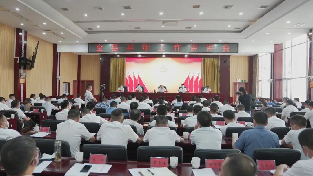 7月24日下午,我县召开半年工作讲评会,总结讲评上半年工作,安排部署下半年工作。县委书记李勇主持并讲话,他强调,全县上下要按照既定部署,再鼓劲、再加压、再冲刺,以更快的节奏、更高的效率、更优的作风,全力推动经济社会高质量发展,奋力夺取全年工作“满堂红”,为挺进全省县域经济十强奠定坚实基础。县委副书记、县长彭方建作讲评报告,县领导鲁勇、凌晓明、熊江新在主席台就座。