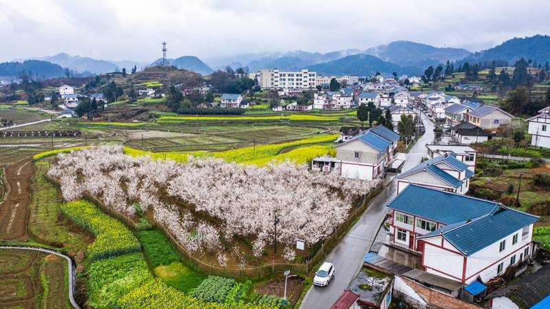 这是贵州省遵义市播州区枫香镇花茂村风貌(无人机照片,2020年2月28日摄)。新华社记者 陶亮 摄