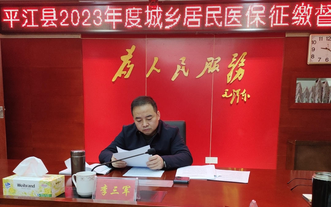 会议宣读了《平江县人民政府督查室关于2023年度城乡居民基本医疗保险基金征缴工作的督查通报(第四期)》,相关乡镇代表就城乡居民医保征缴工作分别作经验介绍与表态发言。