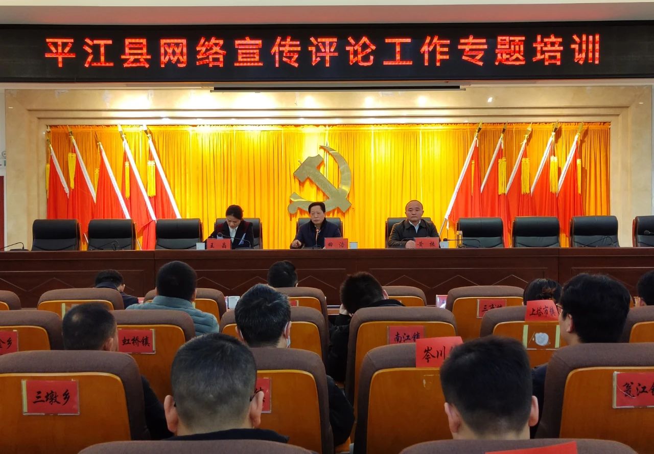 2月17日,平江县举办全县网络宣传评论工作专题培训,各乡镇(街道)网信工作分管负责人、全县骨干网评员、县融媒体中心互联网新闻信息服务内容管理从业人员、县委网信办全体干部、县委宣传部相关股室负责人共80余人参加会议。县委常委、宣传部长田浩出席会议并作动员讲话。会议由县委网信办主任、县互联网信息办公室主任黄振主持。