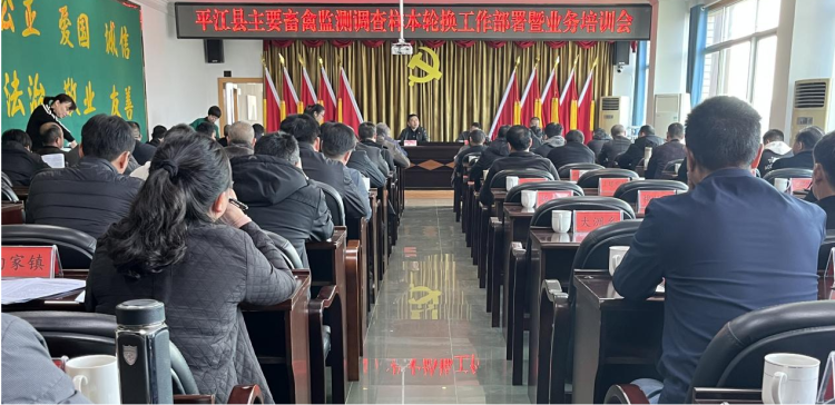 3月26日上午,我县2023年主要畜禽监测调查样本轮换工作部署暨业务培训会在县畜牧水产农机事务中心召开。副县长尹佑祥参加会议,县政府办副主任罗青海主持会议,县畜牧水产农机事务中心、国家统计局平江调查队主要负责人、分管负责人及相关业务股室人员,各乡镇(街道)、园艺示范中心分管负责人,农业综合服务中心主任或畜牧水产站站长和业务人员共80余人参加。