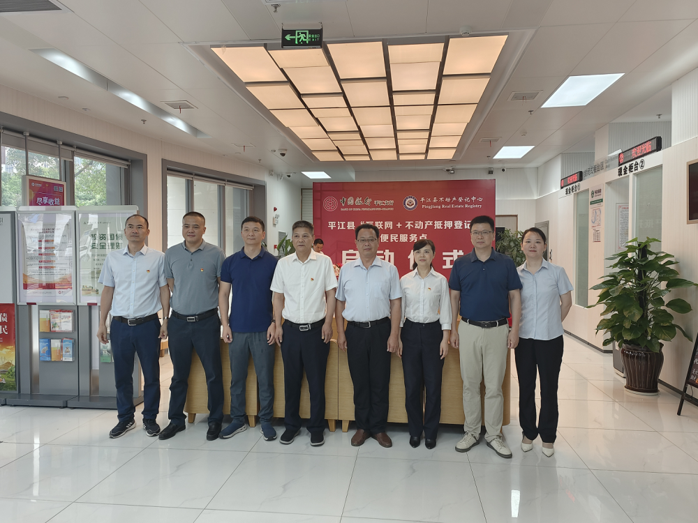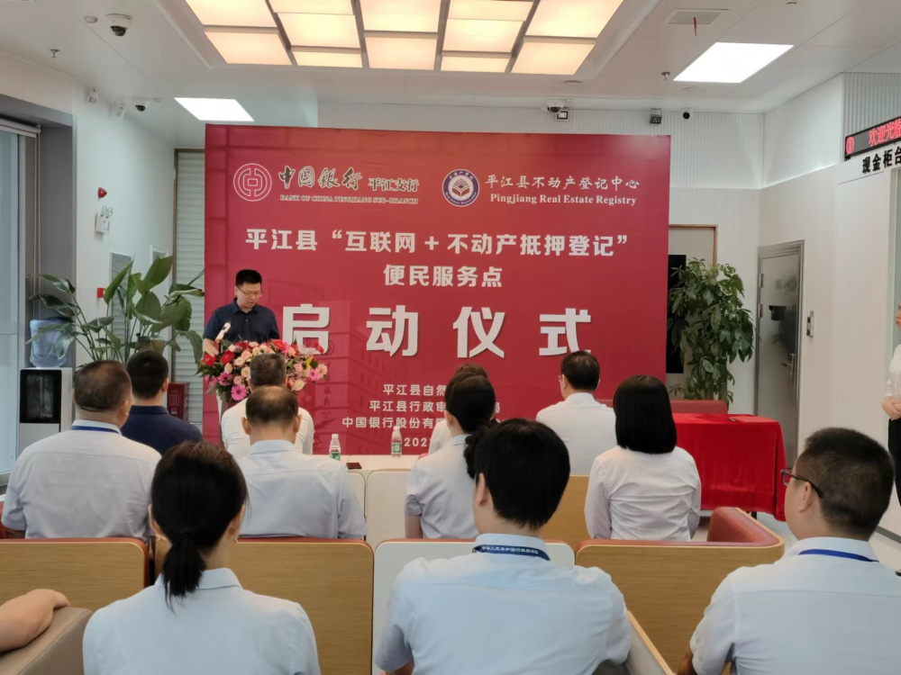 6月13日上午,在中国银行平江支行举行了“互联网+不动产抵押登记”便民服务点启动仪式。县金融办、人民银行、县自然资源局、县行政审批服务局、中国银行平江支行等部门主要领导出席,标志着我县在全市率先开启“互联网+不动产抵押登记”审批服务新模式。