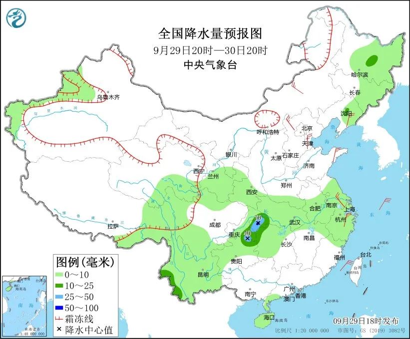 重庆东部、贵州东北部、湖北西南部、湖南西北部以及云南西南部等地部分地区有中到大雨,其中,湖北西南部局地有暴雨。内蒙古东部、辽东半岛、华北北部、浙江北部等地部分地区有4~5级风。