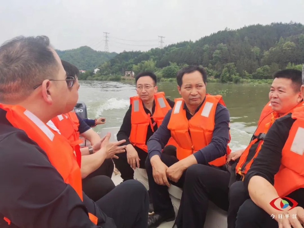 来到汨罗江浯口—瓮江段河道,彭方建一行乘坐冲锋舟沿江而上,仔细查看了周边生态环境、岸线管理、河道保洁等情况。他指出,要加强河道日常监管和长效治理,做好河道疏浚、清淤等工作,努力营造河畅、水清、岸绿、景美的水生态环境。