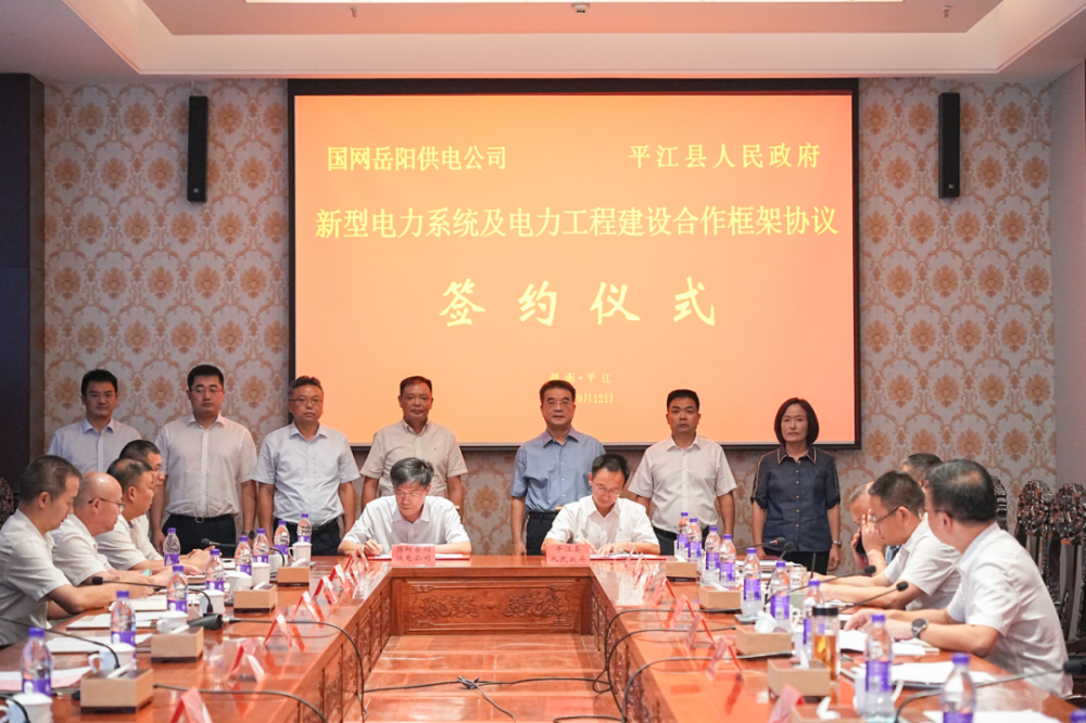 9月12日下午,县人民政府与国网岳阳供电公司举行新型电力系统及电力工程建设合作框架协议签约仪式。双方将本着政企合作、共同发展的原则,充分发挥各自优势,加强在能源电力领域的全面合作,加快构建新型电力系统,实现平江电网向能源互联网转型升级。