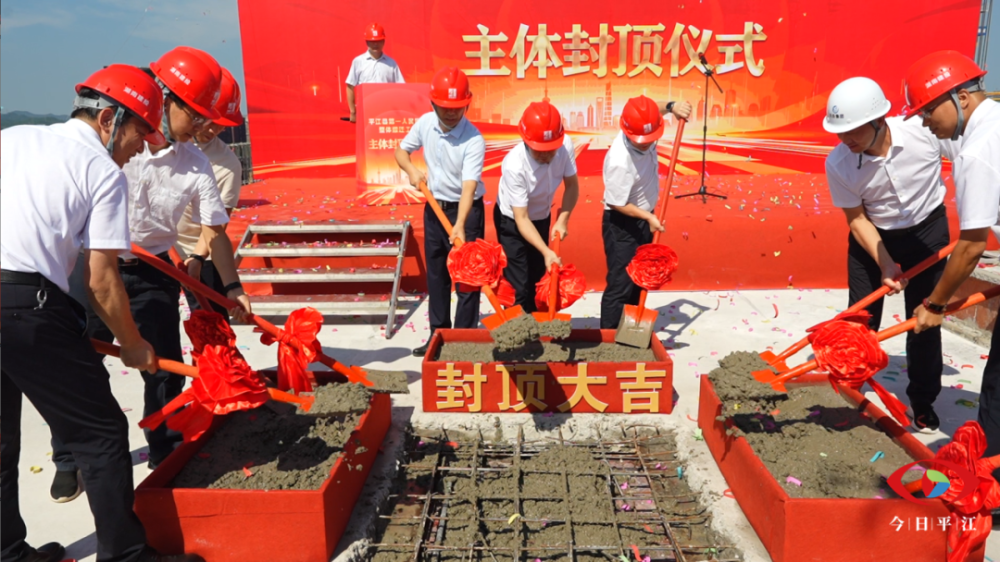 ▲平江县第一人民医院整体搬迁工程举行封顶仪式,副县长夏海、李三军及县政府办、县卫健局、县城投中心、天岳集团、县人民医院、施工方代表等参加。