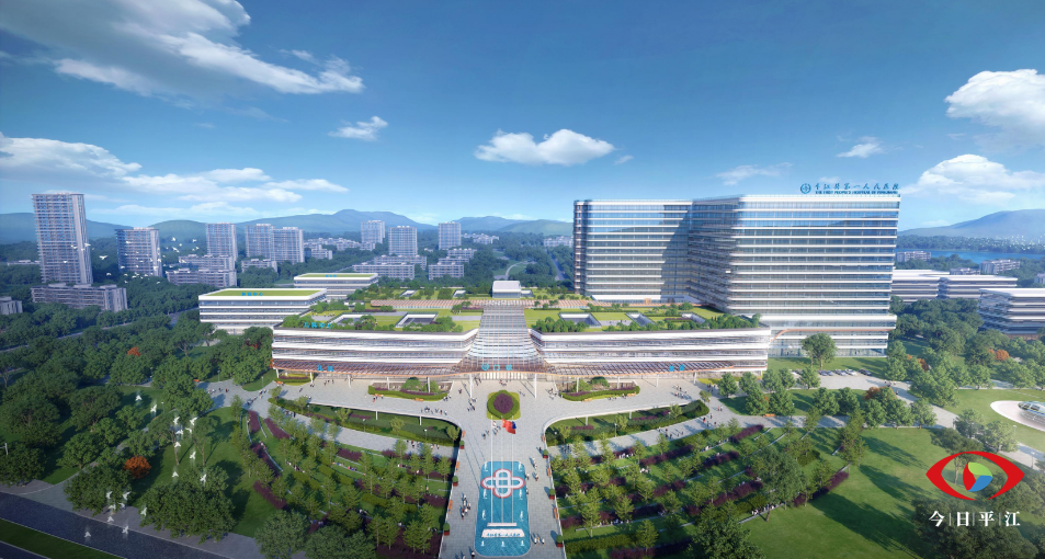 平江县第一人民医院整体搬迁项目建设部位于我县百花台路与杨源路交汇处东北角,于2023年9月11日开工建设。建筑面积约20.06万平方米,设计床位1500张,由医疗综合楼、肿瘤楼、行政办公综合楼、污水处理站、液氧站及配套设施工程组成,是县委、县政府推进公共服务建设的重大民生项目。