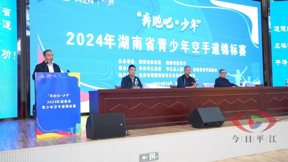 10月25日上午,2024年湖南省青少年空手道锦标赛在平江县第一中学体育馆开幕,副县长李三军出席活动并致开幕词。
