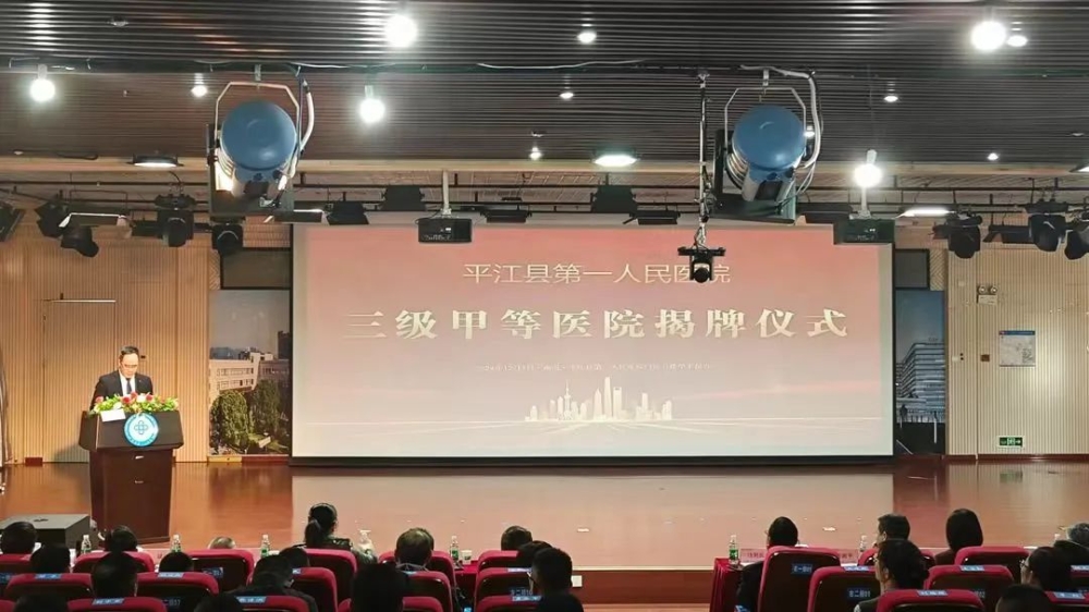12月1日下午,平江县第一人民医院举行三级甲等综合医院揭牌仪式,成为岳阳首家、湖南首批晋升三级甲等综合医院的县级医院,此次成功创建标志着我县在高水平、高质量医疗服务方面再上新台阶。