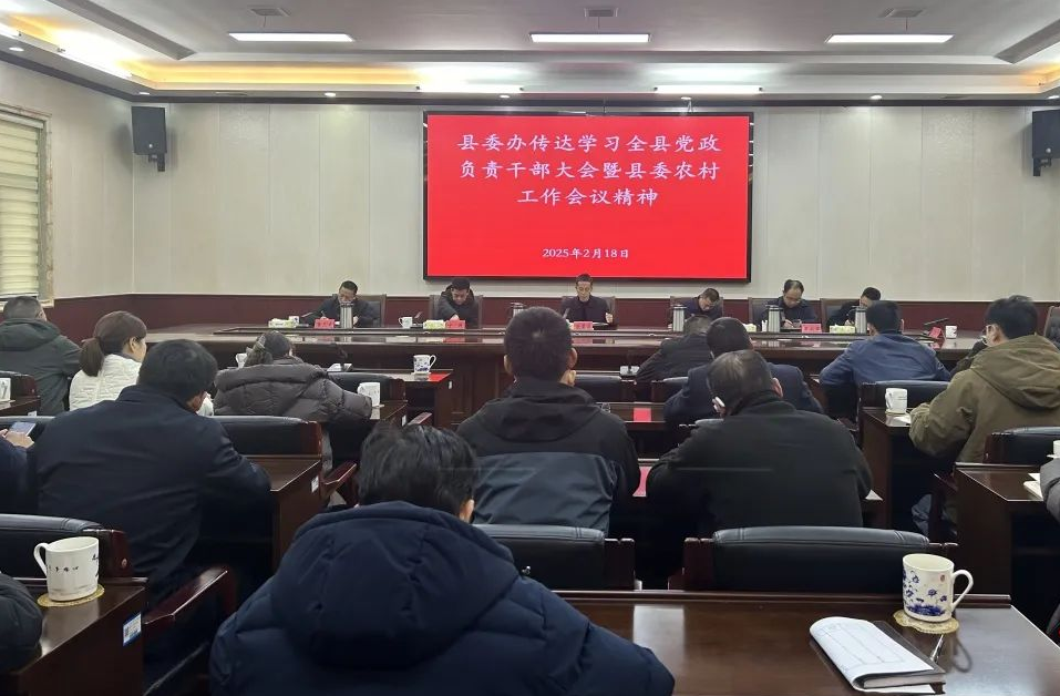 2月18日,县委办公室召开全体干部职工会议,专题传达学习贯彻全县党政负责干部大会暨县委农村工作会议精神。会议强调,全体委办干部要深刻领会党政负责干部大会暨县委农村工作会议精神实质和丰富内涵,切实把思想和行动统一到县委、县政府工作部署上来,加强统筹谋划,狠抓工作落实,积极担当作为,全力以赴推动各项任务落地落实落细,为加快挺进全省县域经济十强贡献党办力量。