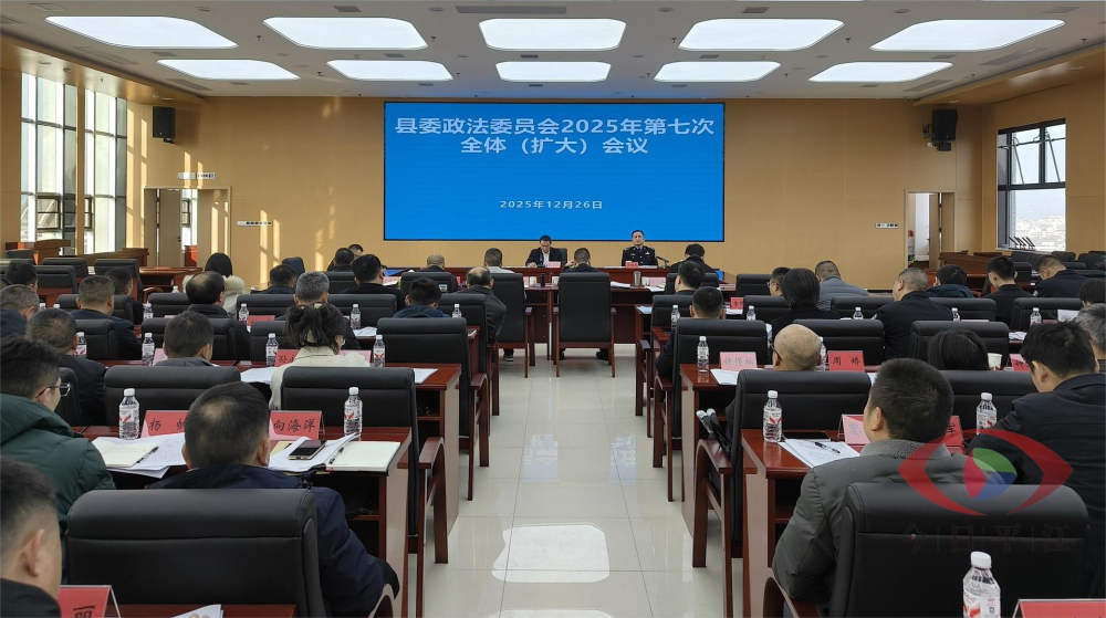12月26日,县委政法委员会2025年第七次全体(扩大)会议召开,县委常委、政法委书记彭喜丰主持会议并讲话,副县长、公安局局长吴曙光出席会议。