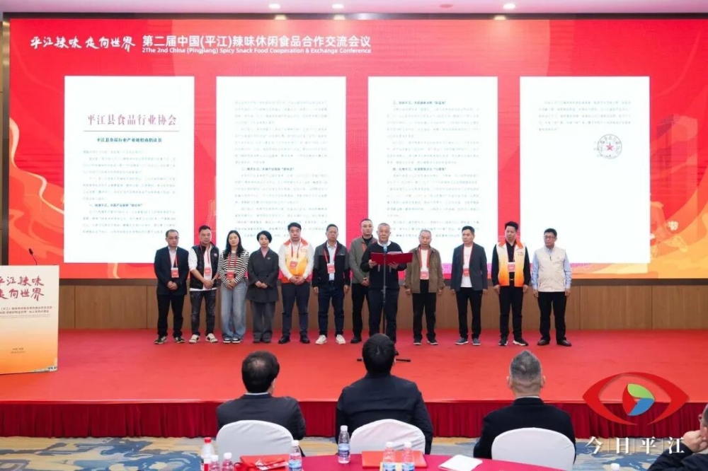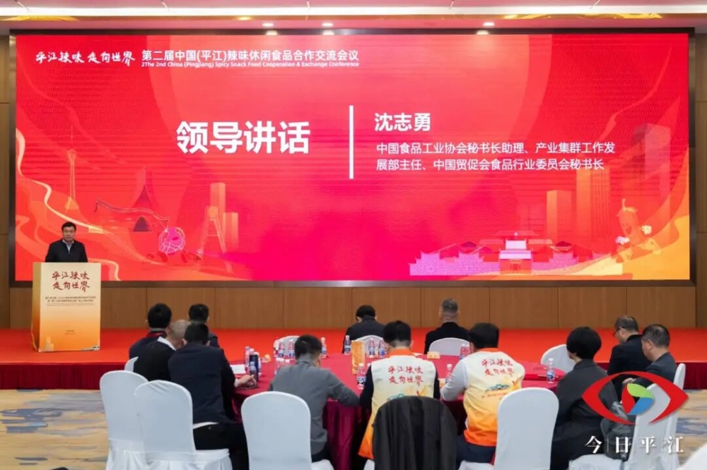 平江县委副书记、县长阳建在讲话中指出,平江是“中国辣味休闲食品之都”“中国辣条之乡”,凭借多年来的实干与匠心,已形成较为完整的休闲食品产业体系,年产值近500亿元,培育了劲仔、麻辣王子等知名品牌,产品远销海内外。他表示,平江县委、县政府将抢抓发展机遇,以更强决心聚链成势,围绕产业链上下游协同发展目标,高效衔接原料、生产、营销、物流等环节,构建更具韧性和竞争力的产业体系;以更大力度推动创新,深化与高校院所及院士专家合作,加强技术攻关,在传承传统风味的基础上提升产品质量;以更宽视野开放共赢,加强与海内外商协会及企业的交流合作,让更多产品走向国际市场;以更实举措优化服务,始终秉持“企业为本、服务至上”理念,优化惠企政策、强化要素保障,让企业在平江安心投资、放心发展。