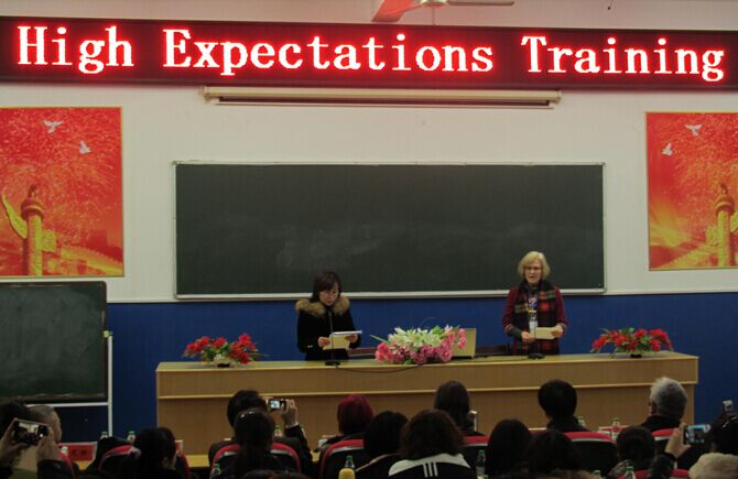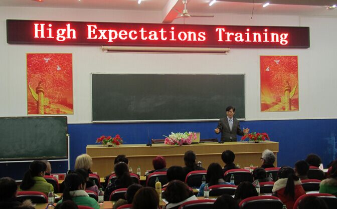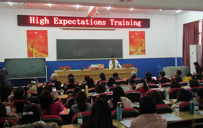 据了解,高目标英语培训在平江是首次,培训为期一个月,学员来自全县的7所高中和65所初中的英语老师。培训过程中,首先三位外教将到学校下班听课,与学生交流,考察学员如何组织课堂教学。考察之后,外教和授课教师交流,研讨制订出教学技巧。随后,所有学员参加听课,重点关注英语教学中教学技巧和方法的改良,如听、说、读、写四种技能的综合运用,地道的语言材料使用和有实效的活动组织,沟通的途径和方法等6个方面。接下来,将再一次考察学员的课堂教学,检查是否在课堂中使用学到的技巧,并为学员将来的教学改革制订计划。在培训结束时,将进行闭幕式,总结培训工作,并要求学员展示学习效果。