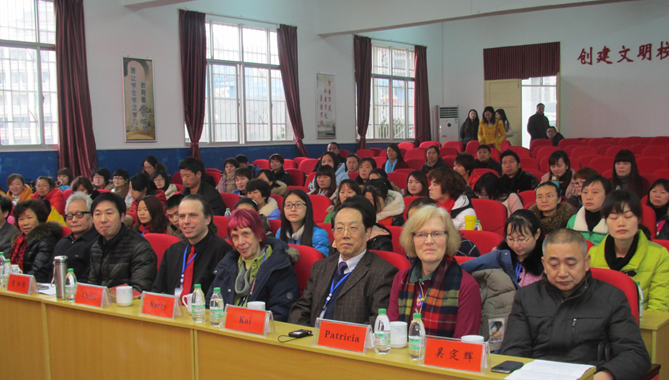 3月5日上午,“高目标英语培训项目”开班仪式在三阳中学举行。来自加拿大的Patricia、Kathy、Chris和加拿大Sloane College学院院长郝海军,平江一中84届校友会与平江天岳启明教育基金会会长颜卫彬,平江县教育局党委书记、局长吴定辉,副局长童怀思,平江一中原副校长黄传忠,平江县教师进修学校校长李江村出席,来自全县的70多位英语教师参加开班仪式。