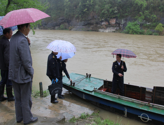 近日来春雨不断,各地水位均出现不同程度的上涨,全县进入了防汛期。为保证人民群众的出行安全,在县交通局局长吴尚勇、县地方海事处主任谢朝晖的带领下,两部门联合执法,对辖区内各渡口、客(渡)船、旅游船等进行了汛期安全大检查,确保汛期水上交通安全。
