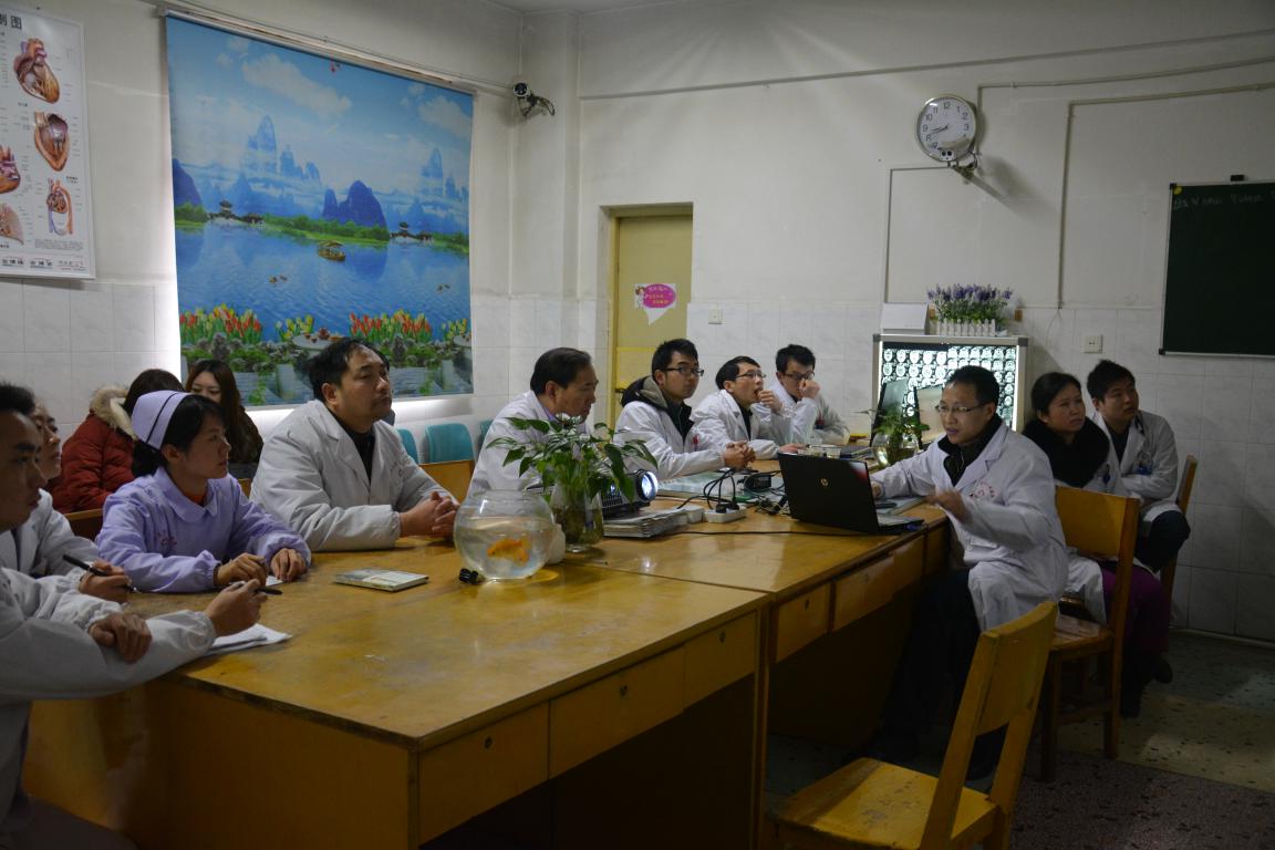 1月18日,北京协和医院心血管医学领域著名专家常教授,莅临县第一人民医院心血管内科指导工作。大内科主任彭建军,心血管内科副主任李春海,护士长邓银春热情接待了常教授,并逐一向常教授介绍该院心血管内科目前的医疗水平及未来的规划和发展愿景。常教授对心血管内科工作的开展予以了肯定与赞同。李春海副主任以幻灯片的形式详细的向常教授介绍了心血管内科几例疑难病例的病情及治疗方案,并陪同常教授一同前往病房仔细查看患者。随后,常教授与心血管内科的医生们一起,就查房的患者病情进行深入讨论并作具体指导,最后,常教授介绍了目前心血管疾病诊疗技术最新的进展,并给该院心血管内科的建设与发展提出了宝贵建议。
