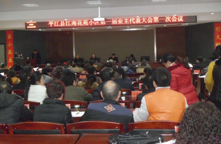 2月1日上午,江南花苑小区第一届业主代表大会第一次会议在房产局大会议厅隆重召开。此次会议的召开标志着我县小区自治、维权管理进入了一个新阶段。