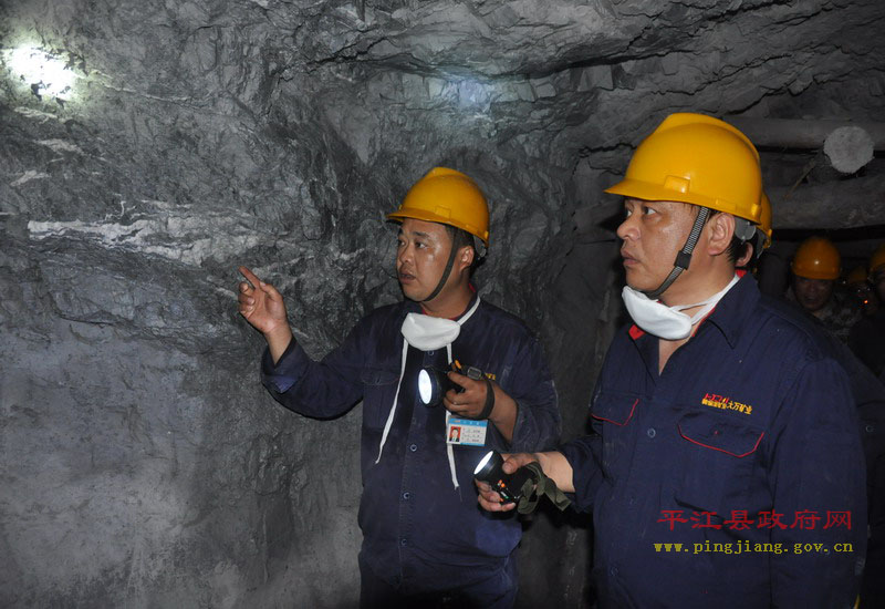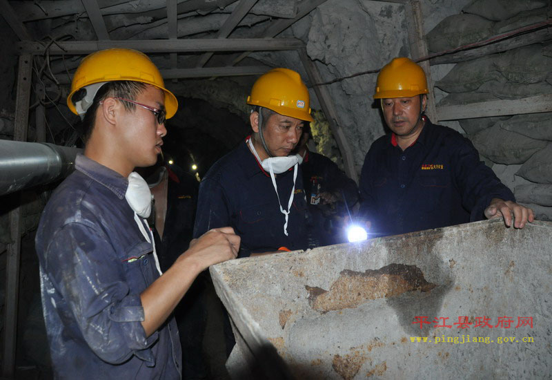 在黄金洞矿业高层的陪同下,黄启富一行在现场查看了大万选厂提质扩能项目建设,并通过查看图纸和井下作业现场查看矿石资源、品位、出矿能力等,详细了解大万井下生产情况。