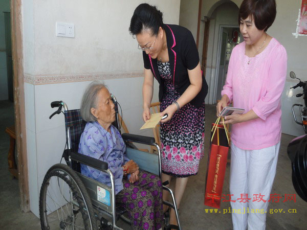 8月7日,岳阳市妇联主席魏淑萍走访慰问平江三名抗战女兵罗光凤、蒋姿荣、王赛梅,为她们送去慰问金和物资。县妇联主席戴迎春、副主席李向阳陪同走访慰问。