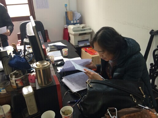 沈楠副理事长在仔细查阅乡镇残联工作资料