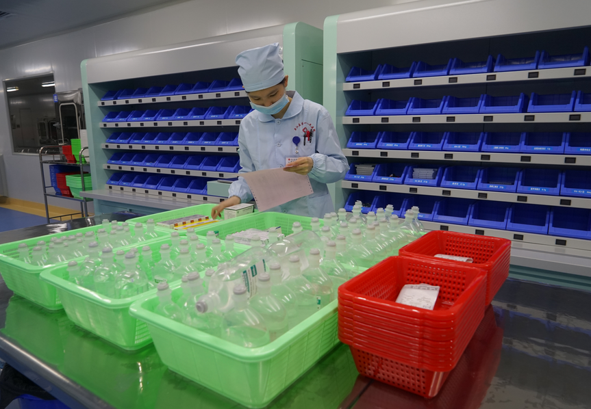 静配中心主任谢艳丽介绍说,静脉药物配置中心是在符合国际标准、依据药物特性设计的操作环境,由受过专门培训的药技人员,严格按照标准操作程序,进行静脉药物的配置;将原来分散在病区治疗室进行配置的静脉用药,集中由专职的技术人员在万级洁净、密闭环境下进行配置。减少了药物污染、交叉耐药等等情况发生,更保证了静脉输液的安全。