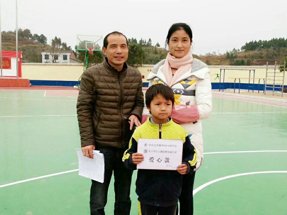 12月29日下午,“中山大学博学MBA同学会”、“天下平江人”微信公益行动爱心人士来到杨泗小学,向三年级贫困学生张应佳捐赠善款1200元。