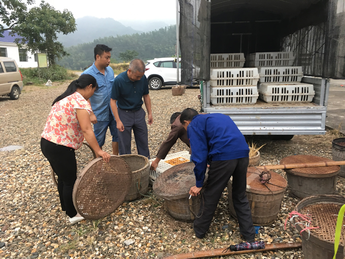 9月28日上午,县教育体育局党委书记、局长吴定辉与驻村扶贫干部裴卫雄等一行,将750只小鸡送给福寿山镇吉星村21户贫困户。