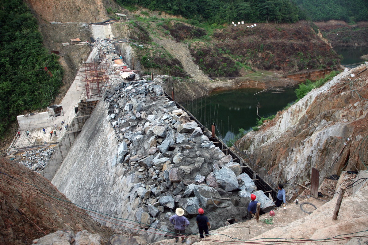 近日,笔者走进城关饮水工程蓄水大坝施工现场,看到一派热火朝天施工忙的景象,施工人员不畏酷暑,保质保量抢抓进度,力争10月1日前圆满完成任务,为国庆六十周年献礼。目前,该蓄水大坝进入攻坚扫尾阶段。(摄影 悬浮)