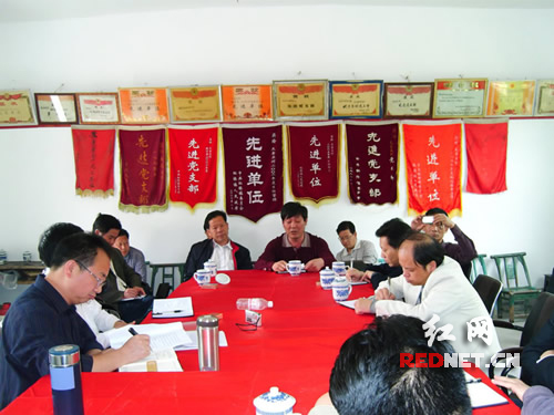 红网岳阳5月6日讯(通讯员 唐征 毛秋生 刘湘平)昨日,省财政厅扶贫工作队队员、平江县挂职副县长郭照光来到平江县虹桥镇天岳关村,召集县直6家职能部门在这里举行扶贫开发工作现场办公会,协商解决该村发展中存在的“瓶颈”。