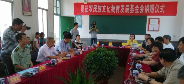 捐赠仪式上,原山东临沂军分区司令员,夏征农民族文化基金会理事方晓江先生讲话,他为同学们生动地讲述了当年从长寿镇邵阳走出的将军方正老同志的革命故事,并勉励同学们努力学习,实现中华民族的伟大复兴梦。县教育局党委书记、局长吴定辉对“夏征农基金会”对老区文化教育的关注和关心表示感谢,并希望同学们多读书,读好书,好读书。随后,吴定辉与夏征农基金会理事长夏晓梅女士共同为邵阳方正图书室揭牌。