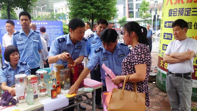 6月10日,在县食安委牵头组织下,县商务局组织人员在县城天岳汽车站路口参加“食品安全周”宣传活动,商务综合执法大队在街头布置宣传展板,向市民介绍假劣酒类识别,病死、病害猪肉辨别和单用途商业预付卡监管等知识,设置展台展示部分今年以来查获的假冒茅台、五粮液、水井坊等高档白酒和邵阳大曲、劲酒等普通白酒。活动印发宣传资料1000余份,接受咨询50余次,得到了市民和消费者的好评。