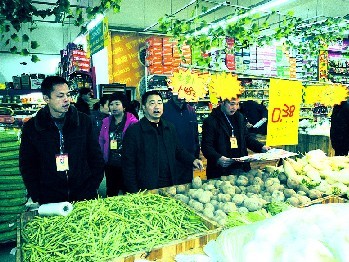 县物价局针对连续阴雨天气引起蔬菜价格偏高现象,积极展开市场调研、价格监测和市场价格检查。 陈 强 摄