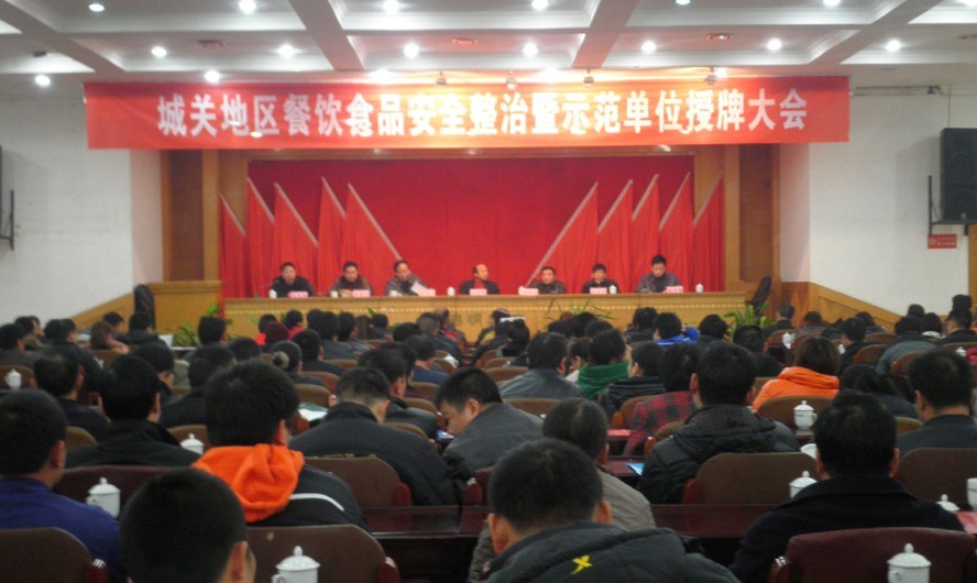 12月28日,平江启明宾馆容纳380人的大会堂座无虚席,县药监局在这里举行隆重的集会,来自城关地区餐饮服务各单位负责人、新闻记者、县创建指挥部、县卫生局领导和县药监局全体干部职工共计400余人召开城关地区食品安全整治暨示范单位颁奖授牌大会。这次大会标志着城关地区餐饮服务单位的集中整治进入高潮阶段。