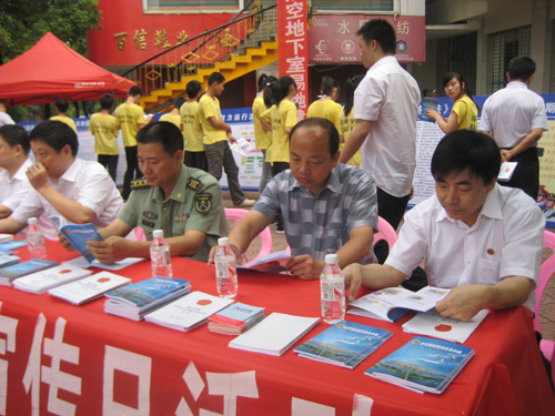 6月29日,县人防办在县城十字街路口设立宣传展台和群众咨询点,开展贯彻实施《湖南省实施〈人民防空法〉办法》集中宣传活动。县委常委、人武部长邱爱国及县政府办副主任余昭彰、县人防办主任吴恩厚亲临现场指导。活动中,县人防办工作人员和百余名学生志愿者向过往群众免费发放《湖南省实施〈人民防空法〉办法》以及公众防空防灾应急手册1000余册。