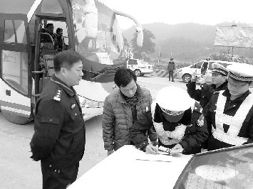 1月14日上午九点,平伍公路驷马桥路段,南来北往车辆穿梭如织,平江县政府办副主任刘克佳、县公安局副局长王槐欣等带领10余名交警在现场执法,检查一辆辆过往车辆,对存在“三超一疲劳”驾车情况的予以严肃处理。