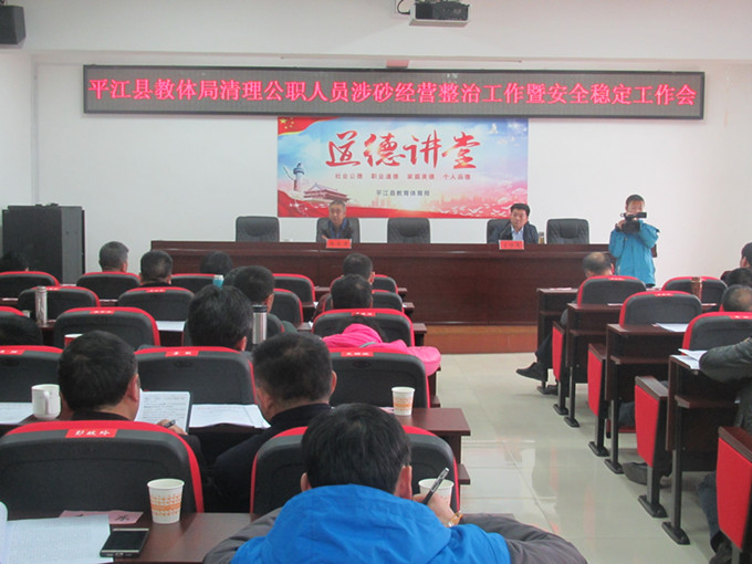 2月20日,县教体局召开清理国家公职人员涉砂经营整治工作部署会,贯彻落实县委、县政府清理公职人员涉砂经营活动整治工作会议精神,安排部署教育体育系统专项整治工作。县教体局副股长以上干部,学区主任、县直学校校长,各学区纪检专干、县直学校分管纪检工作副职等140余人与会。
